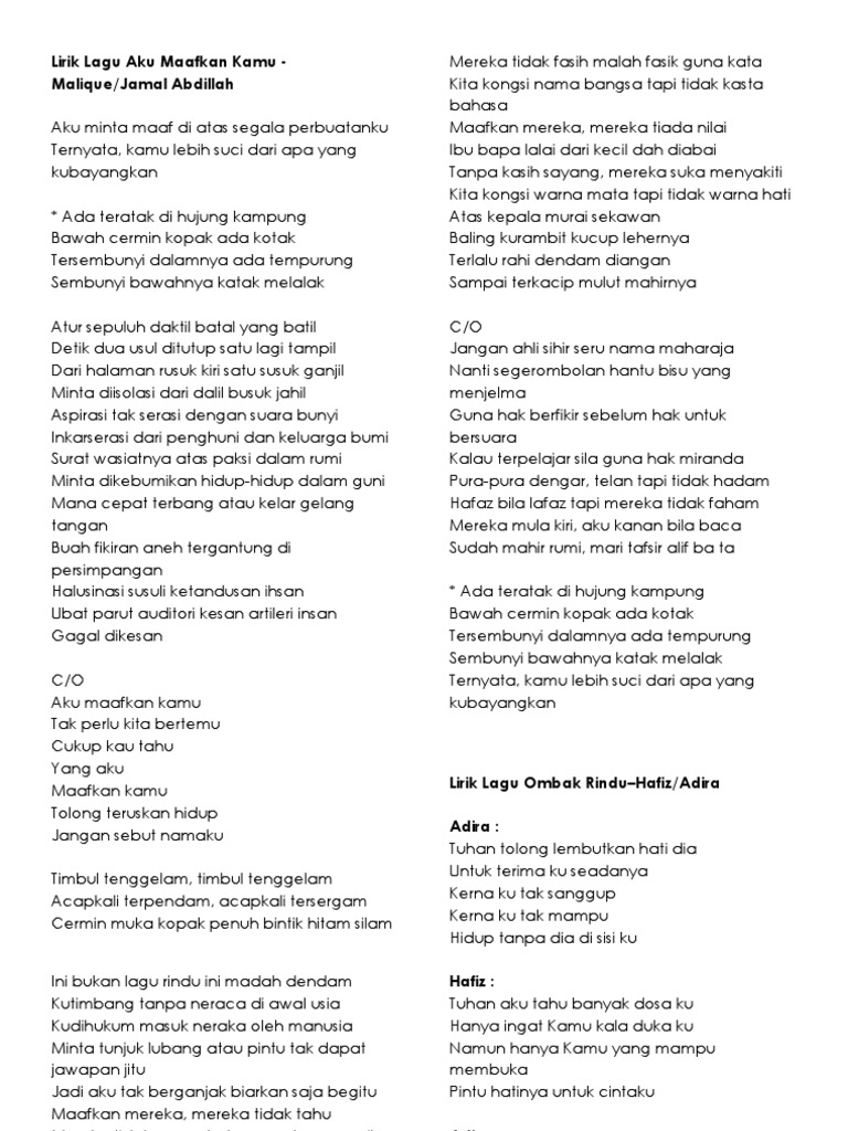 Lirik Lagu Aku Maafkan Kamu Pdf
